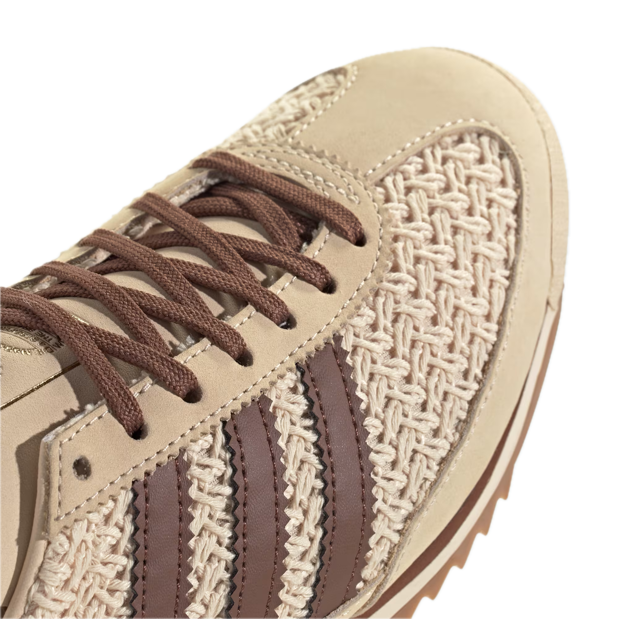 Model łączy piaskowy odcień Sand Strata z ciepłym brązem Preloved Brown oraz kremowymi akcentami Cream White. Zamszowo-nylonowa cholewka, kontrastowe trzy paski i klasyczne logo SL 72 podkreślają autentyczny, vintage’owy charakter sneakersów.