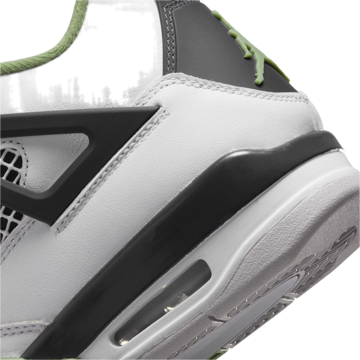 Delikatna kolorystyka Seafoam w odcieniu mięty przełamana neutralną bielą nadaje sneakersom świeży, lekki i bardzo kobiecy charakter. Klasyczne panele AJ4, siateczkowe wstawki oraz subtelne detale tworzą harmonijną całość, idealną do jasnych, codziennych stylizacji.