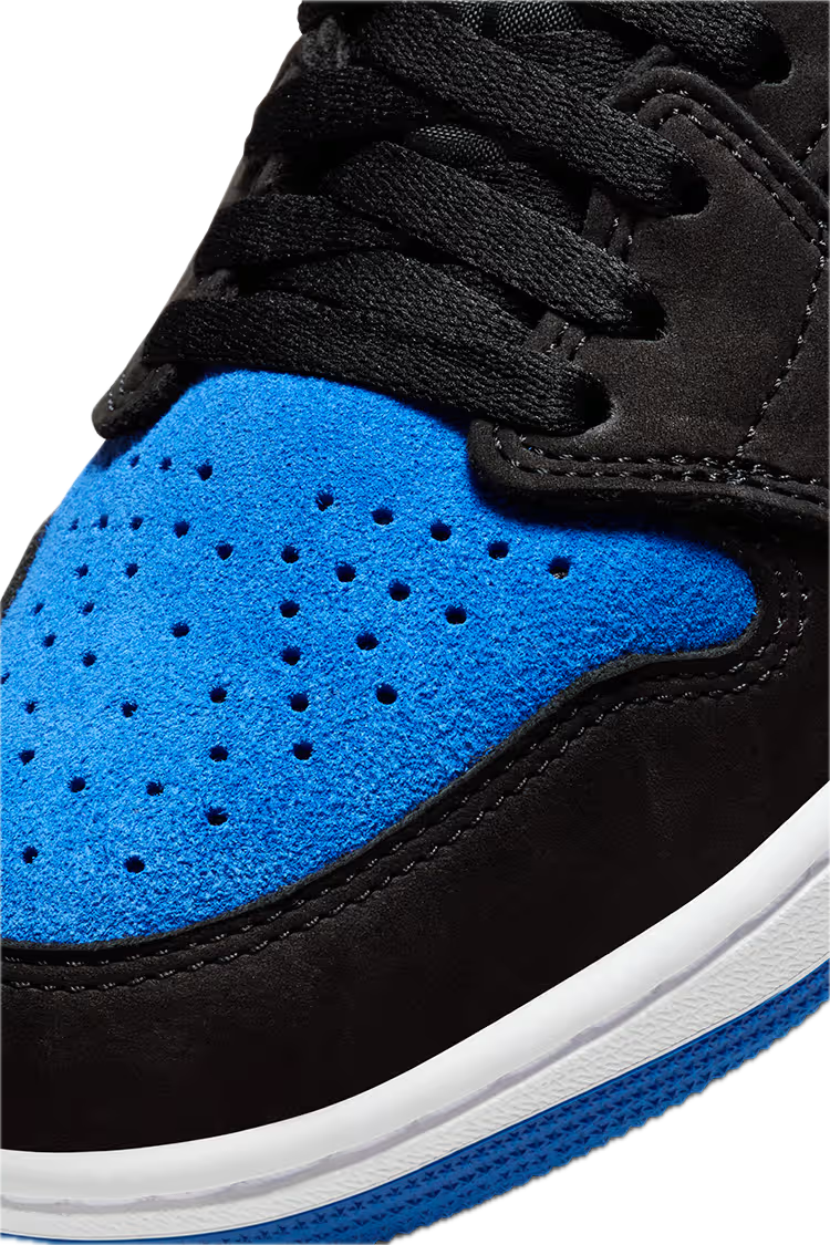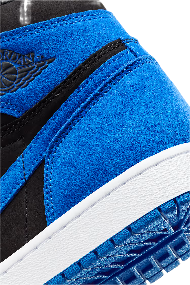 Charakterystyczne połączenie czerni i Royal Blue zostało wzbogacone o zamszowe panele, które nadają sneakersom miękkości i premium charakteru. Zmieniona faktura materiałów odświeża znany design, zachowując jednocześnie rozpoznawalną sylwetkę AJ1 High OG i jej ponadczasowy styl.