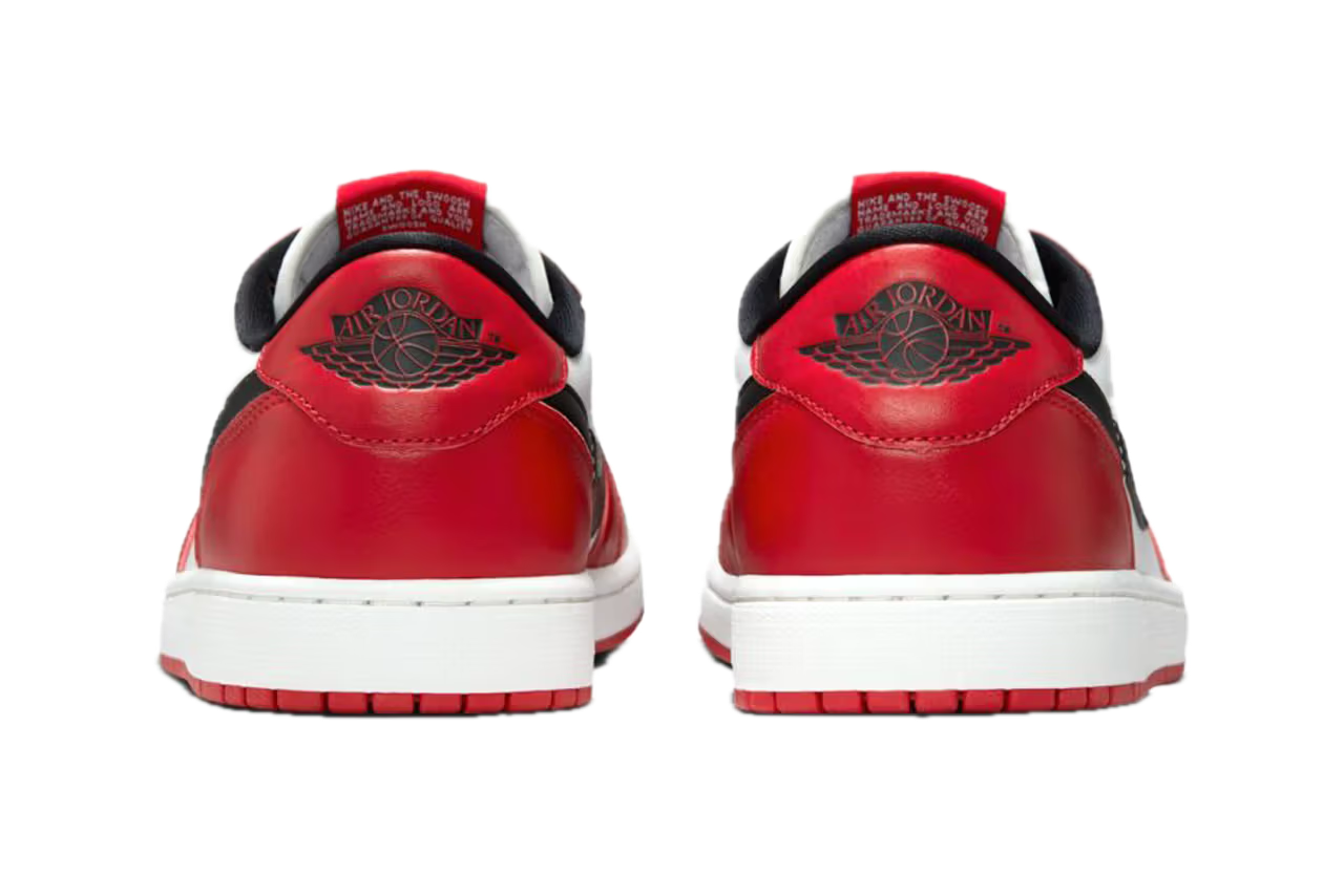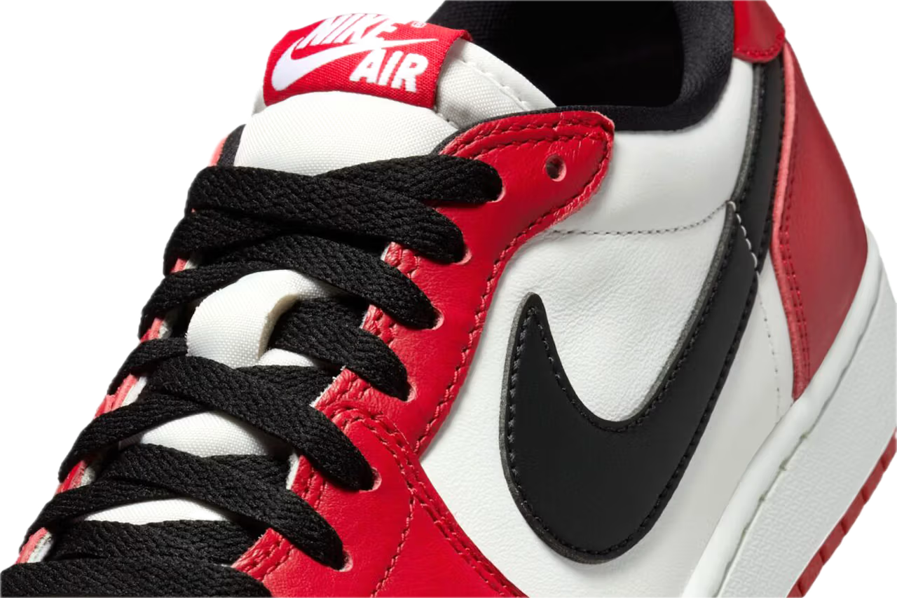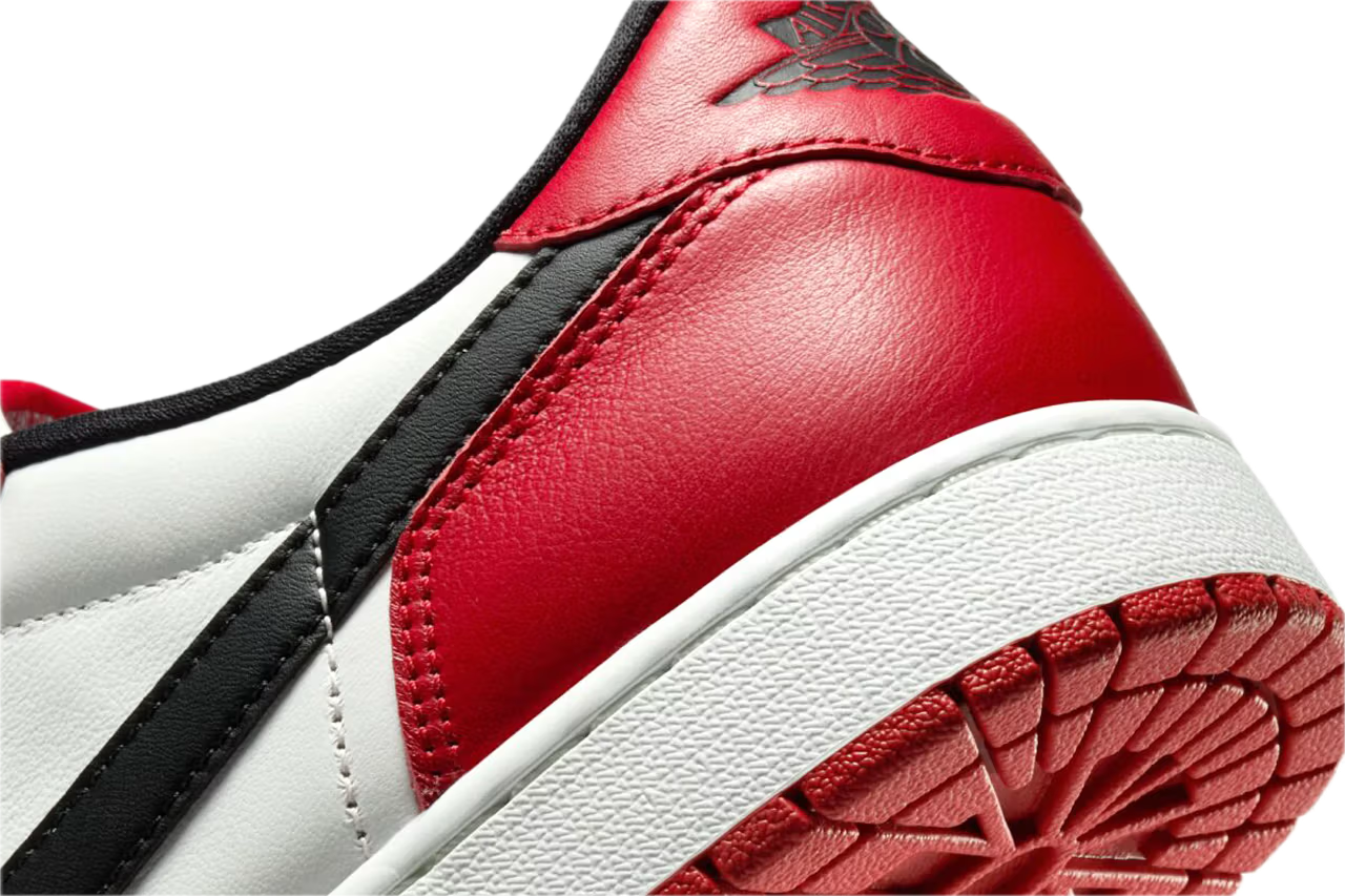 Sneakersy wyróżniają się charakterystycznym połączeniem bieli, czerwieni i czerni – kolorów, które na stałe zapisały się w historii linii Air Jordan. Niska sylwetka nadaje modelowi bardziej uniwersalnego charakteru, idealnego do codziennych stylizacji i streetwearowych outfitów.