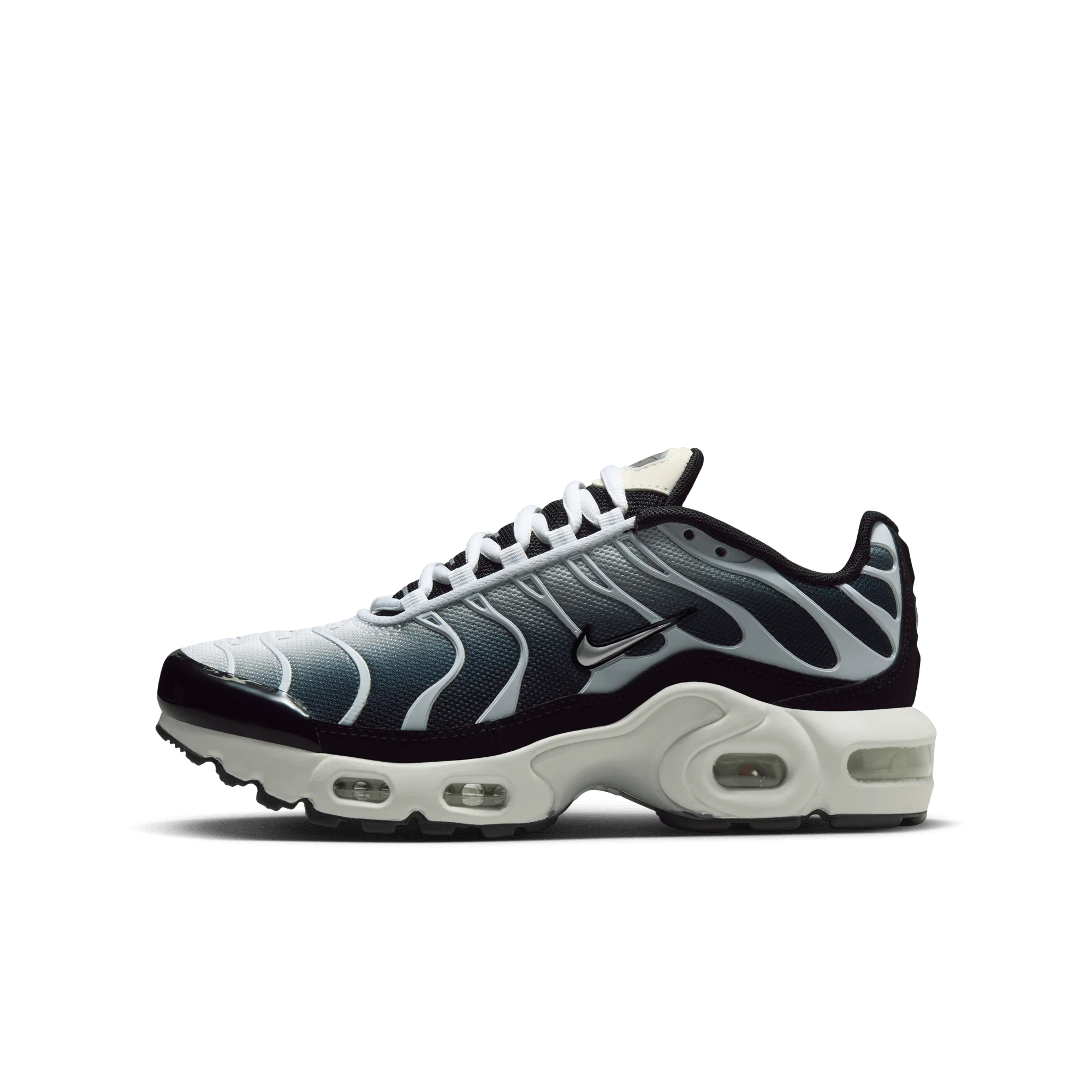 - Nike Air Max Plus Black White Sail Metallic Cool Grey (GS)
