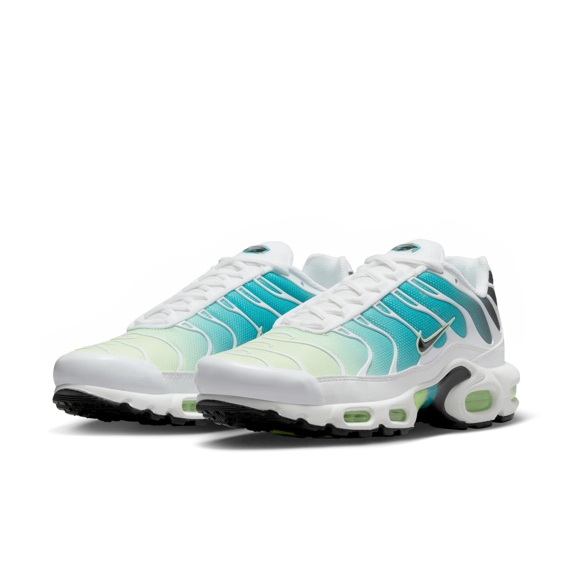 Połączenie odcieni Dusty Cactus i Barely Volt nadaje butom energetycznego, letniego charakteru. Subtelne neonowe akcenty kontrastują z bazą cholewki, podkreślając faliste linie i charakterystyczną klatkę TPU, które definiują design Air Max Plus.