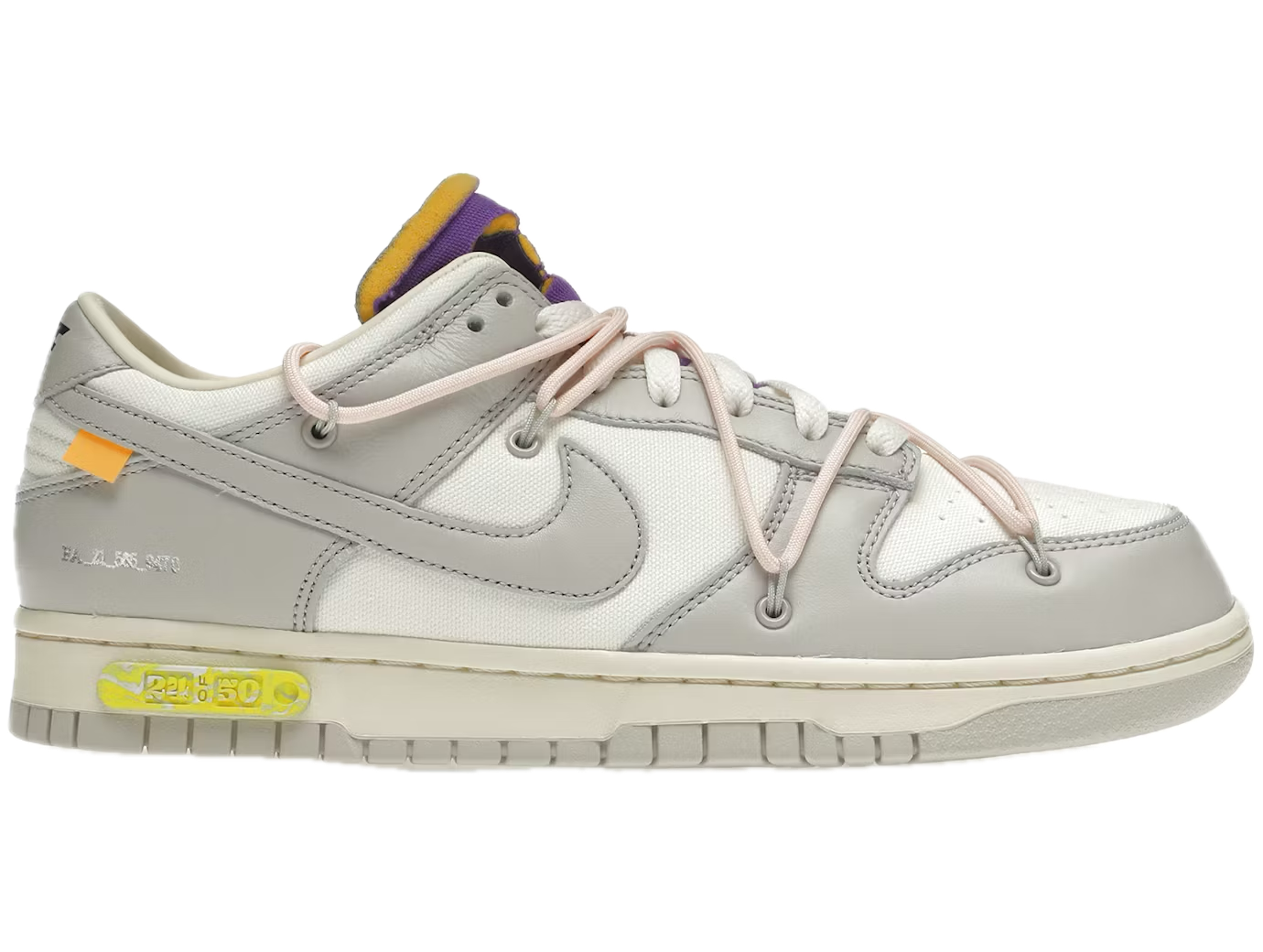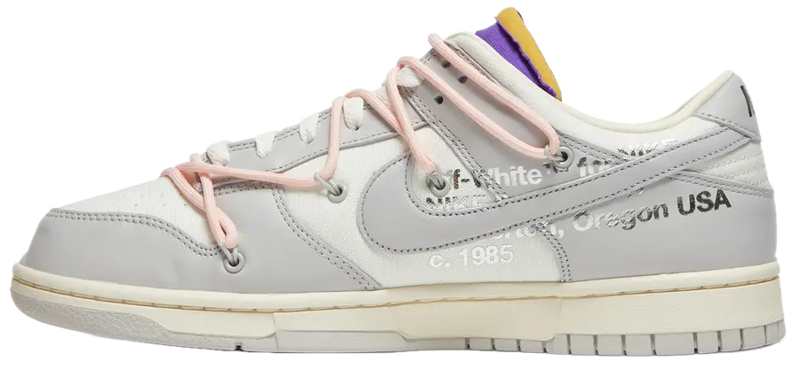 Nike Dunk Low Off-White Lot 24 to część przełomowej kolekcji „The 50”, stworzonej przez Off-White pod kierownictwem kreatywnym Virgil Abloh. Każdy numer w serii stanowi unikalną interpretację klasycznego Dunk Low, łącząc sportowe DNA Nike z awangardową estetyką Off-White.
