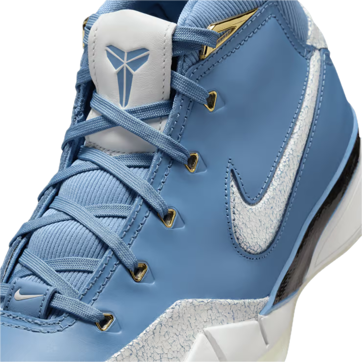 Model wyróżnia się elegancką, mistrzowską kolorystyką inspirowaną barwami Los Angeles Lakers. Złote i fioletowe akcenty symbolizują sukcesy drużyny oraz niezwykłą karierę Kobe Bryanta, nadając butom wyjątkowego, kolekcjonerskiego charakteru.