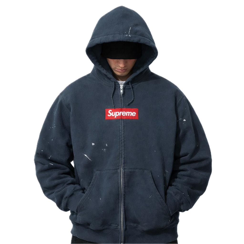 - Supreme MM6 Maison Margiela Box Logo Zip Up Hooded Sweatshirt Navy